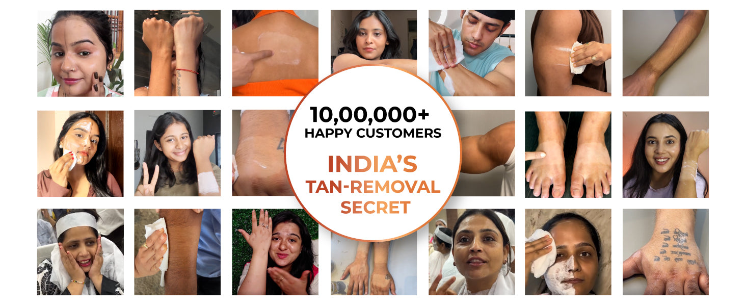 Caution : This product is specially formulated for tan removal and is not intended to lighten or alter the natural skin tone. For external use only. Avoid contact with eyes, lips, and sensitive areas. Do not apply on broken, irritated, or sunburned skin. A patch test is advised 24 hours prior to use to check for sensitivity. Slight tingeling sensation on using is normal. Discontinue use if irritation or redness occurs, and consult a dermatologist if needed. Use only as directed. This product may increase sensitivity to sunlight; apply sunscreen and limit sun exposure during and after use. Not recommended for children under 15 years of age. Store in a cool, dry place away from direct sunlight and out of reach of children. Individual results may vary. Use only as directed. Only one unit of the measured product should be mixed at a time. Do not combine multiple doses in a single preparation. The manufacturer cannot be held responsible for effects resulting from incorrect application or failure to follow usage guidelines.